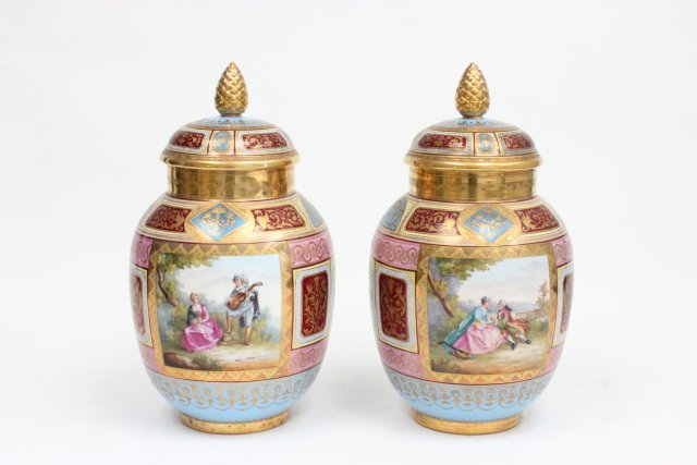 A Pair Of 19th C. Hand Painted Jeweled Royal Vienna Lidded VasesFive Star Auctions4.2(3)$3,5007 days Left