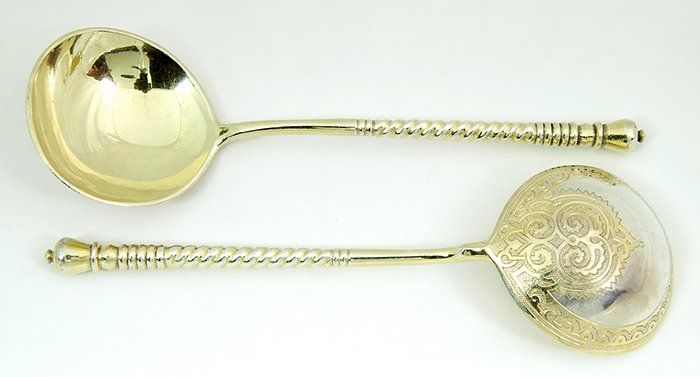 Pair Russian Silver Spoons