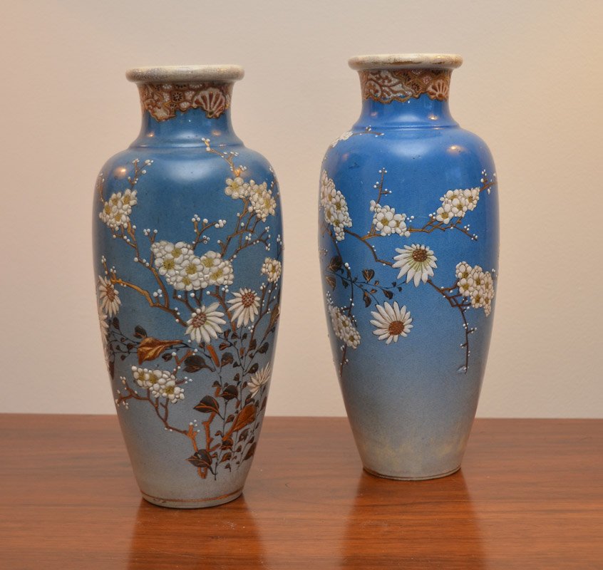 PAIR SATSUMA EARTHENWARE VASES