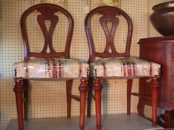 PAIR SIDE CHAIRS W/RED/WHITE/GOLD UPHOL