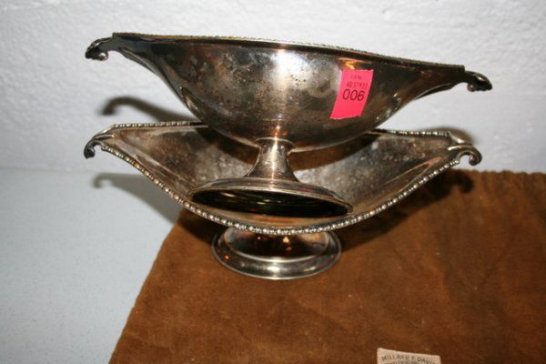 PAIR SILVER PLATED COMPOTES, BOAT-SHAPED W/BEADED