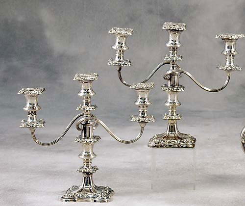 Pair silverplate three-light candelabra