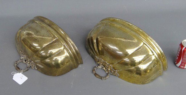 SoldPair Brass Wall Planters Formally Meat Cover Dome -Brass wall planters with etched design andPair Brass Wall Planters Formally Meat Cover Dome -Brass wall planters with etched design and monogram. Converted from an antique meat cover dome. 9 1/2" H x 17 1/2" L x 6 1/2" D.See Sold Price