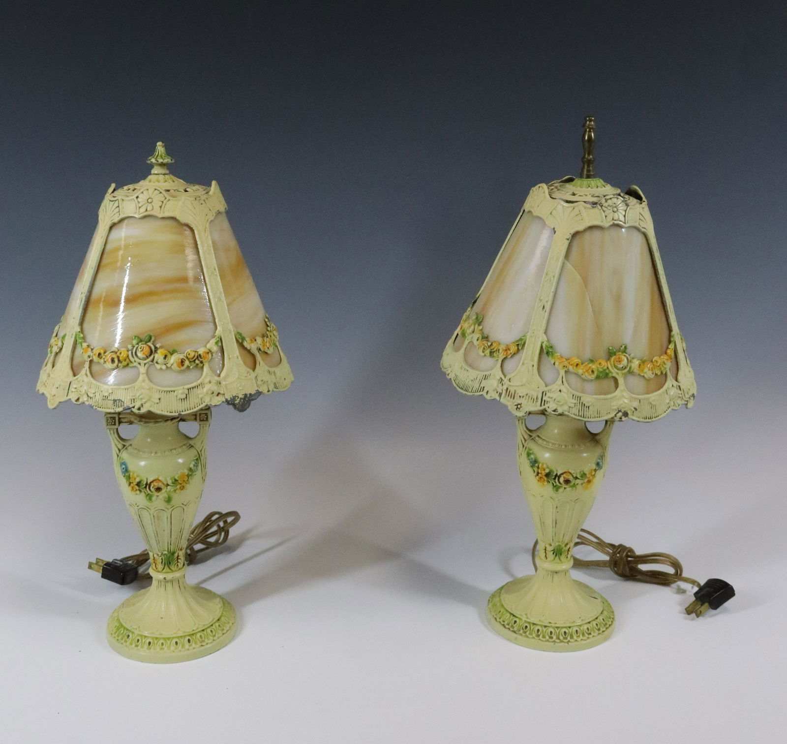 PAIR SLAG GLASS LAMPS