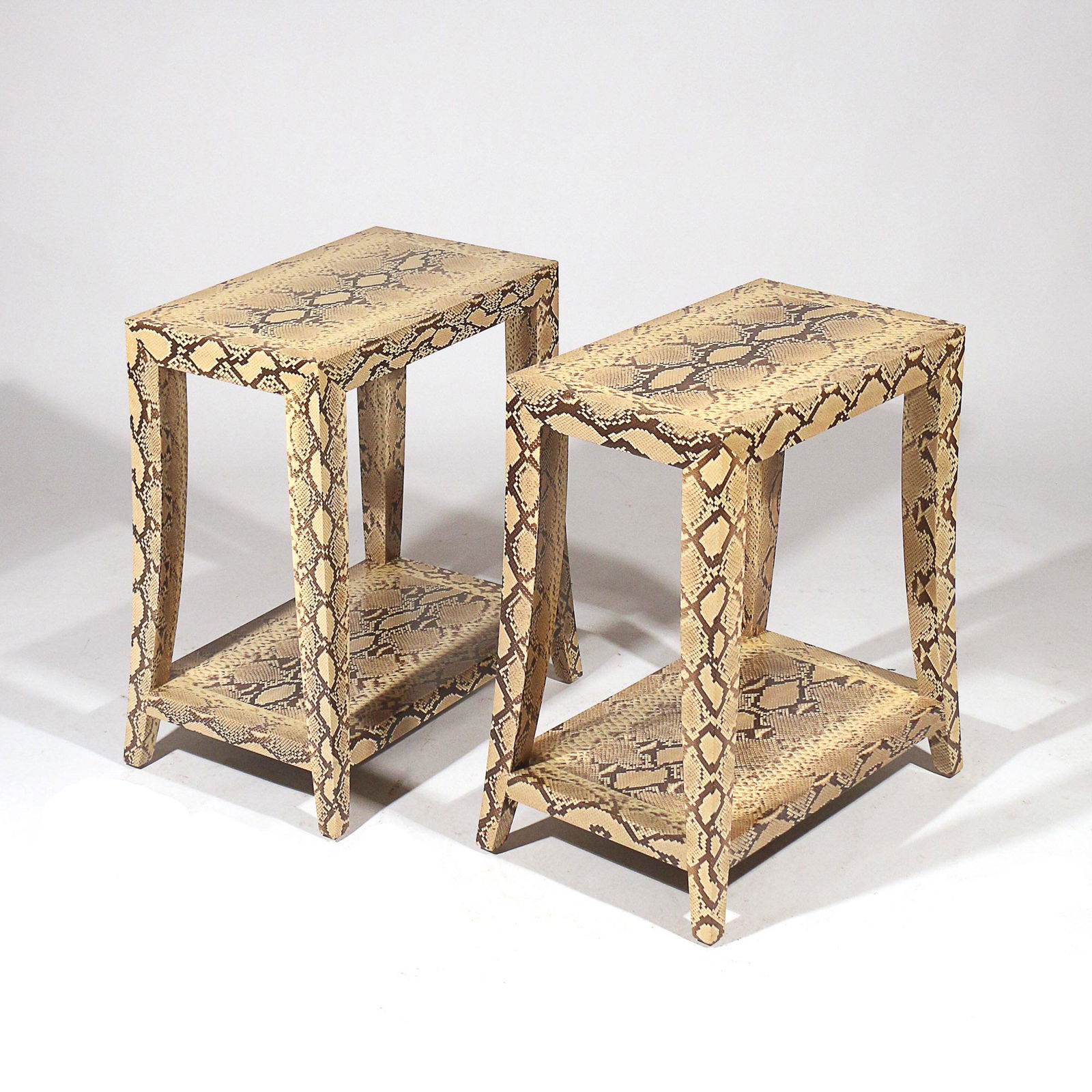 PAIR SNAKESKIN TELEPHONE TABLES AFTER SPRINGER