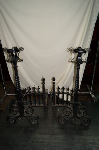 REGENCY MODERNE Pair of Andirons1970swrought iron, brass, unmarkedheight 22 3/4 in; depth 22 in;...Bonhams4(382)$100