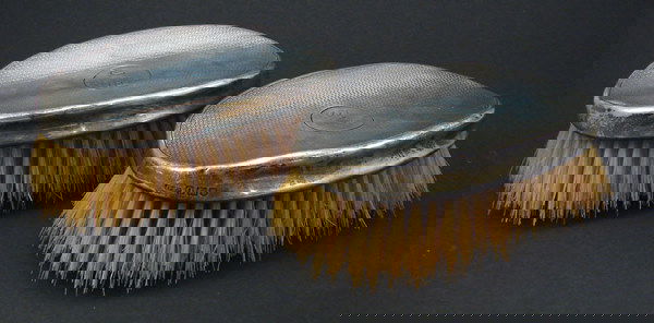 Pair Sterling Brushes. Monogrammed. 2"h x 5 1/2"