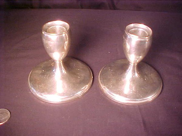 PAIR STERLING SILVER LOW CANDLESTICKS