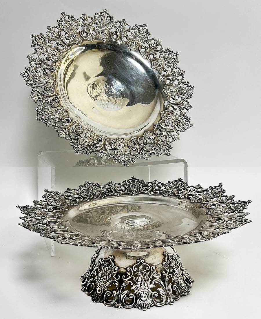 PAIR STERLING SILVER RETICULATED CAKE STANDS