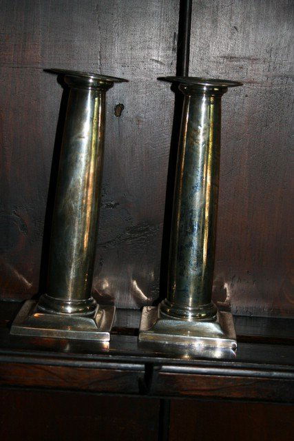 PAIR STRL. SILVER COLUMN FORM CANDLESTICKS W/SQ.