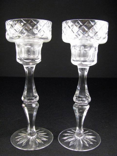 PAIR TYRONE LEAD CUT CRYSTAL TALL CANDLESTICKS