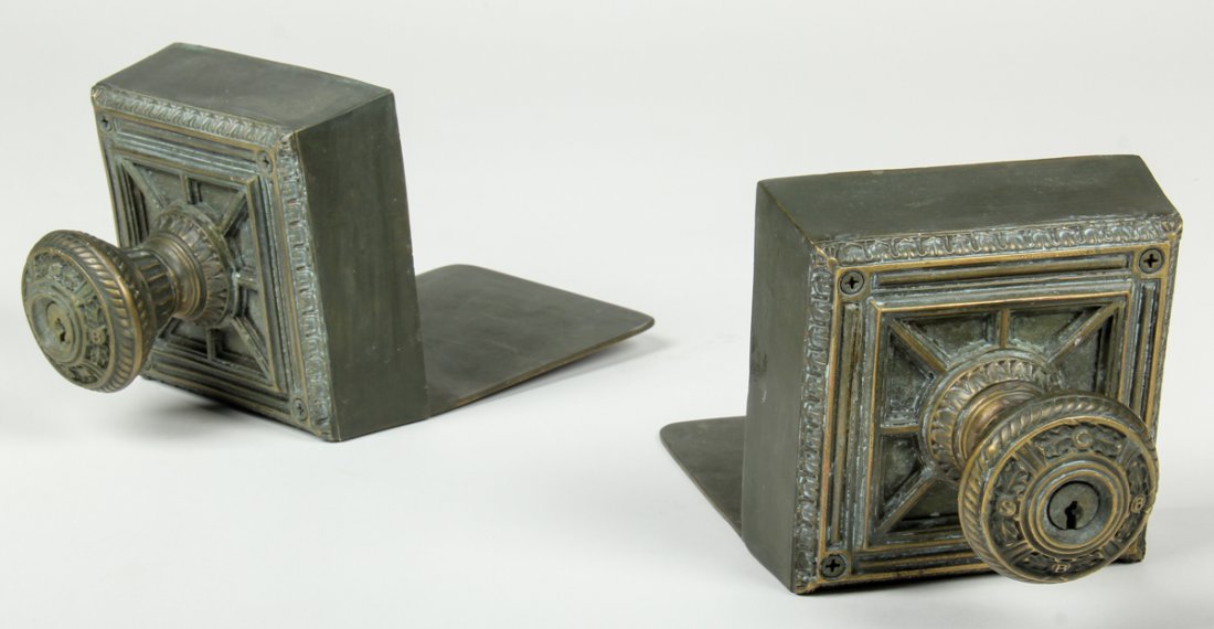 Pair Upcycled Bronze Knob Bookends