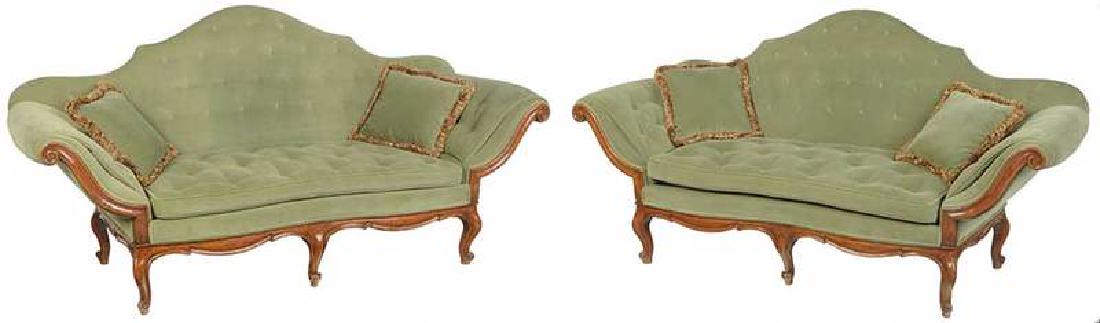 Pair Venetian Rococo Style Carved Walnut Sofas