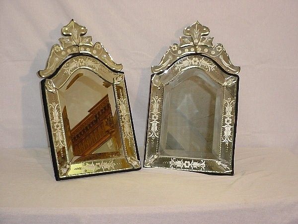 SoldPair Of Venetian Etched MirrorsDESCRIPTION: A pair of Venetian glass mirrors. Features floral etched decorative mirror panels in an arched architectural formed top. CIRCA: 20th Cent. ORIGIN: Italy DIMENSIONS: H: 35" x W: 1" x L: 27See Sold Price