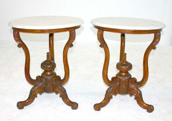 (2) NEOCLASSICAL STYLE SPECIMEN MARBLE-TOP RAM'S HEAD CONSOLE TABLES1 day LeftChinese Heavily Carved, Occasional Tables or Pedestals, Teak, Marble, 1920sPair of Vintage Victorian Marble Top Side TablesMar 06, 2026(2) ENGLISH MAHOGANY PEDESTAL SIDE TABLES7 hrs LeftVICTORIAN HAND-CARVED ROUND MAHOGANY PARLOR TABLE5 days LeftPair of Marble Top Empire Style Lyra End TablesMar 06, 2026Victorian Rosewood Wine Tables, PairMar 05, 2026VICTORIAN MARBLE TOP LAMP TABLE9 hrs LeftSet of Two French Louis XV Walnut and Red Marble Ormolu Side Tables5 days LeftPair Antique Chinese Elmwood Bent Wood Side TablesFeb 28, 2026Set of Two Oak Side Tables in Colonial Revival Design2 days LeftPair American Empire mahogany corner console tables6 days LeftVictorian Antique Round Side Table with Carved Accents3 hrs LeftANTIQUE VICTORIAN FINELY CARVED MAHOGANY ENGLISH SIDE TABLE7 hrs LeftPair of French Art Nouveau Louis Majorelle Style Inlaid Side Tables7 days LeftPair Italian Rococo Style Walnut Carved Demilune Marble Top NightstandsMar 15, 2026