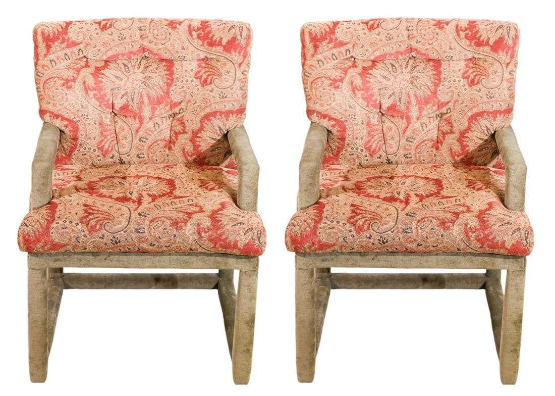 Pair Vintage Custom Upholstered Armchairs