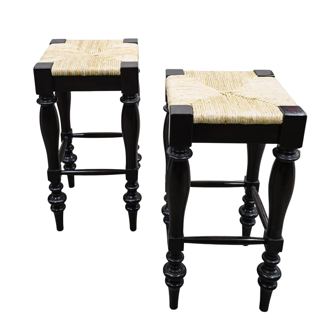 Pair Wicker & Wood Stools