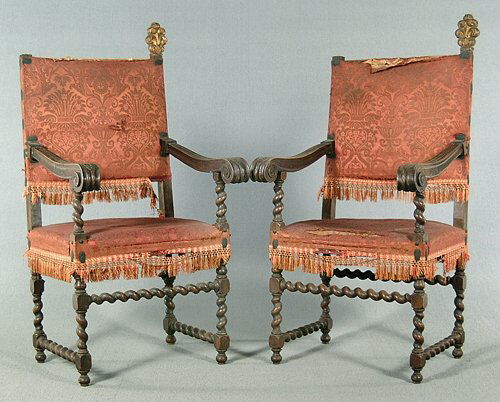 Pair William and Mary style armchairs, e