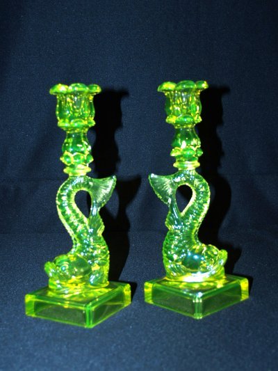 PAIR YELLOW DOLPHIN CANDLESTICKS