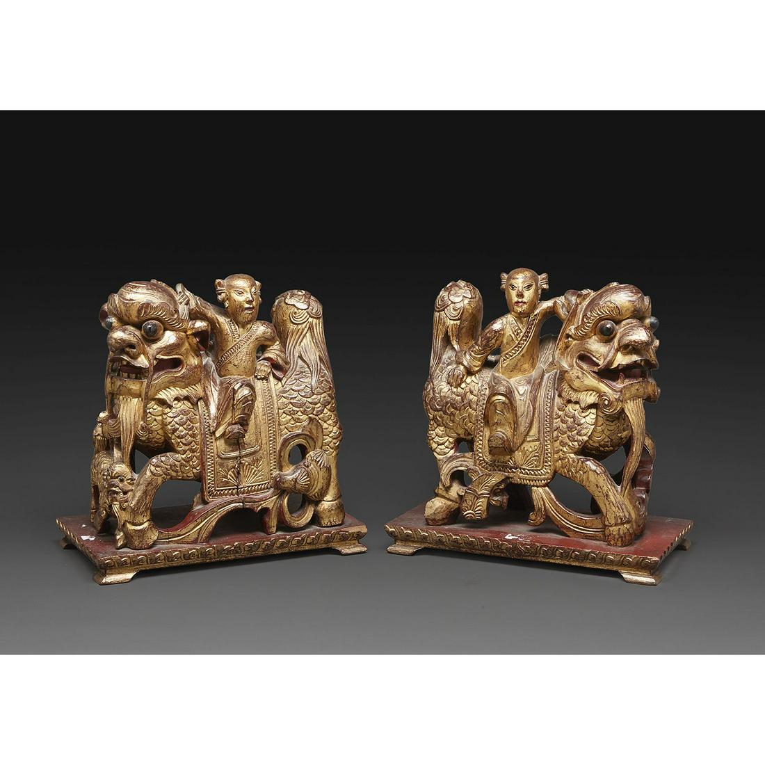 Pair of Chinese Carved Wooden Foo Dogs Resting on Pierced BallsLion and Unicorn4.7(2.3k)$30(1 bid)4 days Left