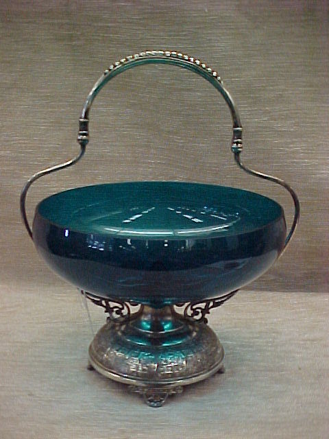 PAIRPOINT BRIDES BASKET W/BLUE GLASS INSERT 13''T