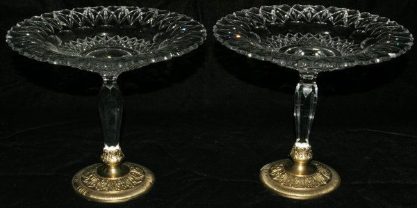 PAIRPOINT CUT GLASS COMPOTES, C. 1920, PAIR