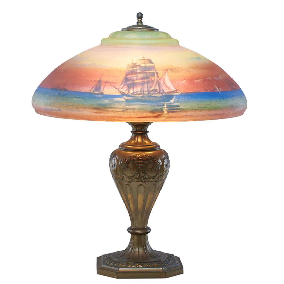PAIRPOINT Large table lamp, ships and sunset
