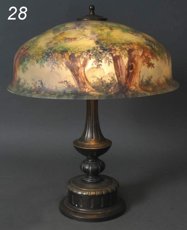 PAIRPOINT TABLE LAMP WITH REVERSE PAINTED SCENIC SH