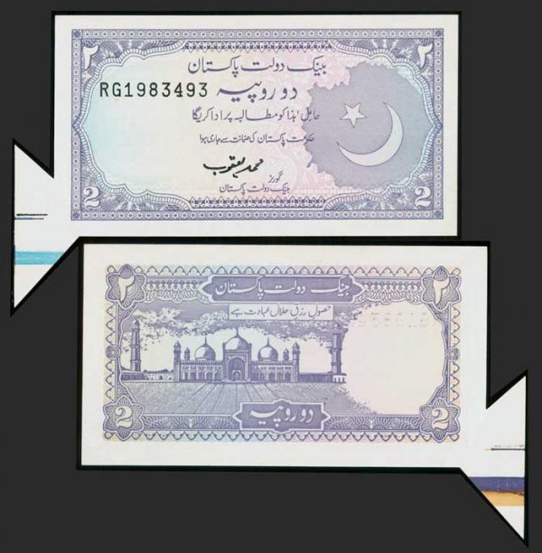 Pakistan 2 Rupees Urdu text line A error UNC