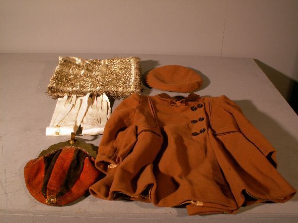 Pale silk embroidered panel; kid gloves;