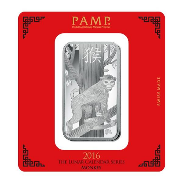 PAMP Suisse Silver Bar 100 Gram - 2016 Monkey Design