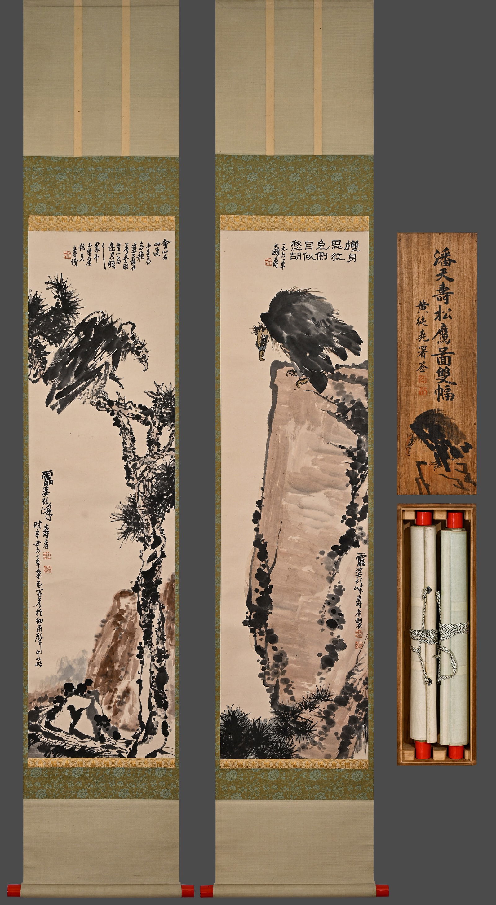 Pan Tianshou's Pine Eagle Diagram Double Screen Paper Vertical Axis