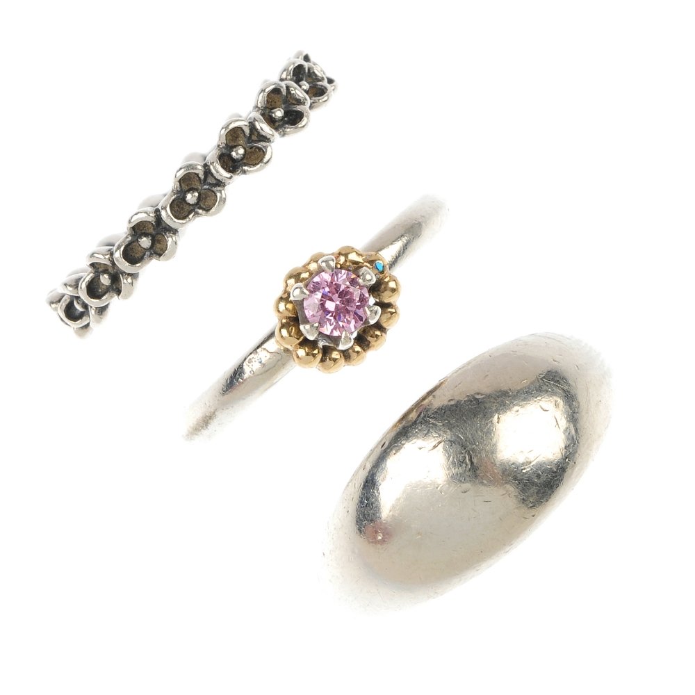 PANDORA - a bracelet and three rings.