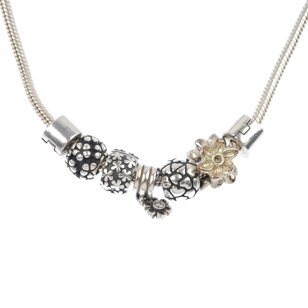 PANDORA - a silver charm necklace.
