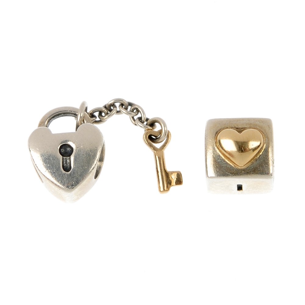 SoldPANDORA - two charm bracelets.PANDORA - two charm bracelets. The first suspending five Pandora charms, the second suspending two Charm Co. charms, four non designer charms and three Pandora charms. Many with maker's marks. LengthsSee Sold Price