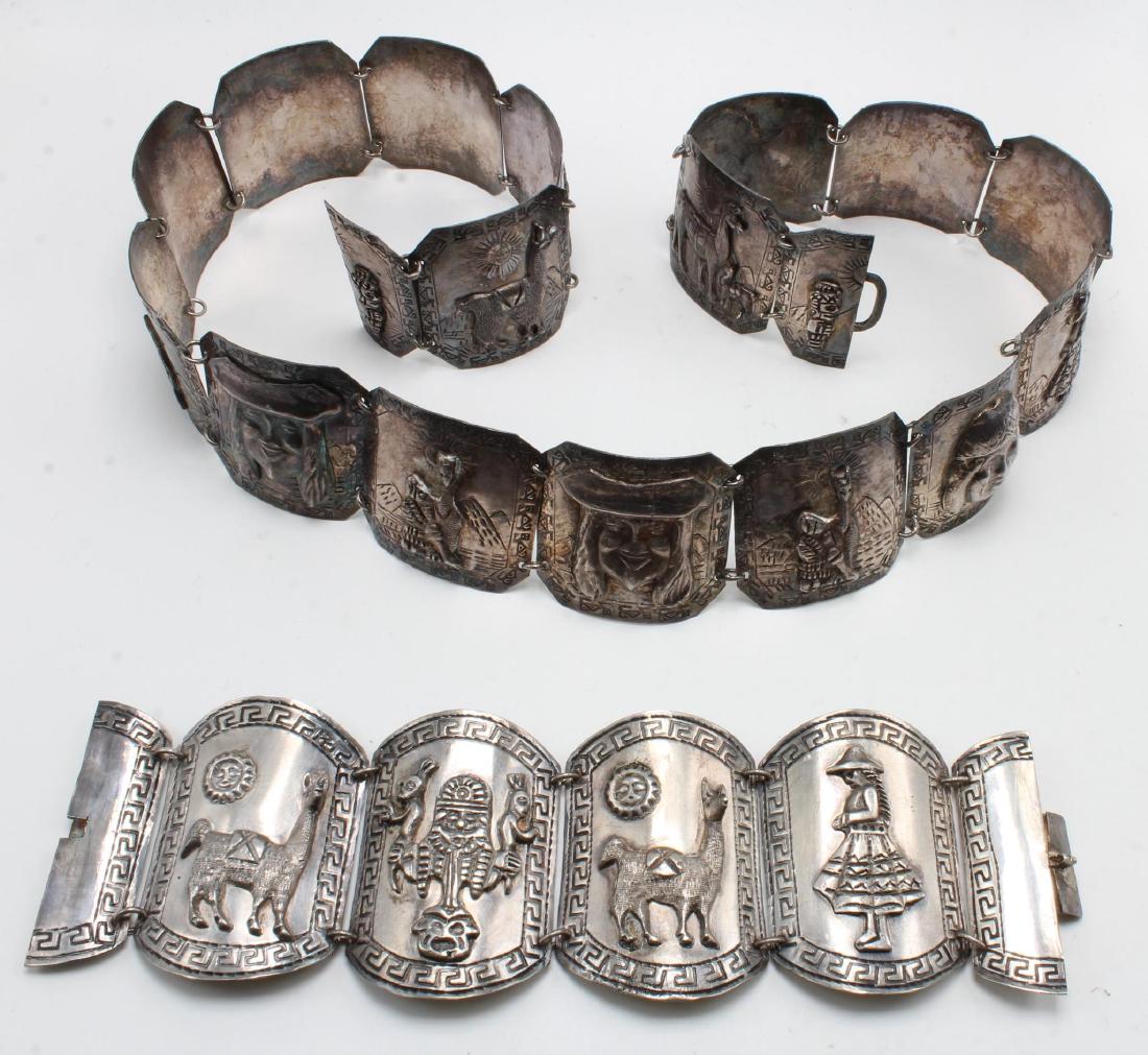 Panel Link Belt and Bracelet. Peruvian. Sterling