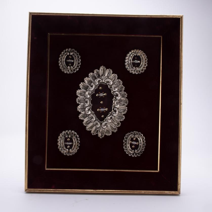 Panel with six relics, 20th century.