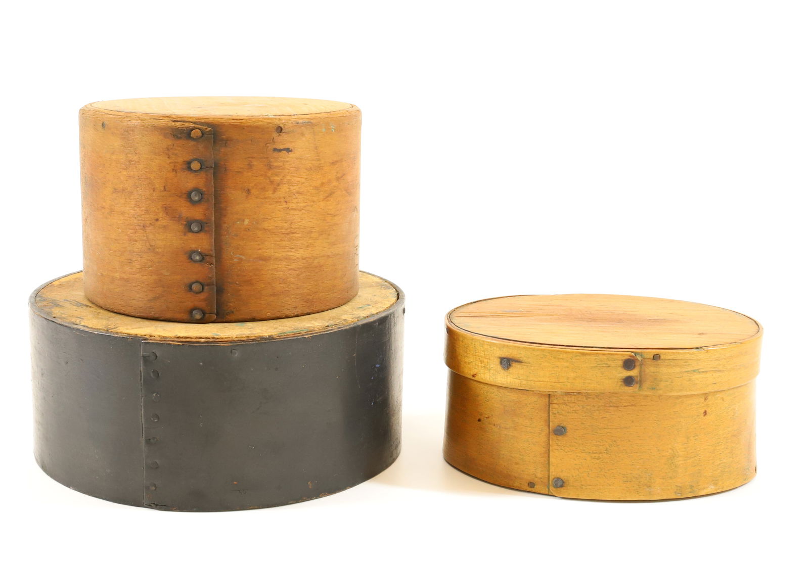 Lot of 3 antique oval pantry boxes - 1 marked EB on lid - 2 1/2" tall x 6" long, 3" tall x 7 1/2"Flying Pig Auctions4.7(395)$50(2 bids)Mar 23, 2026