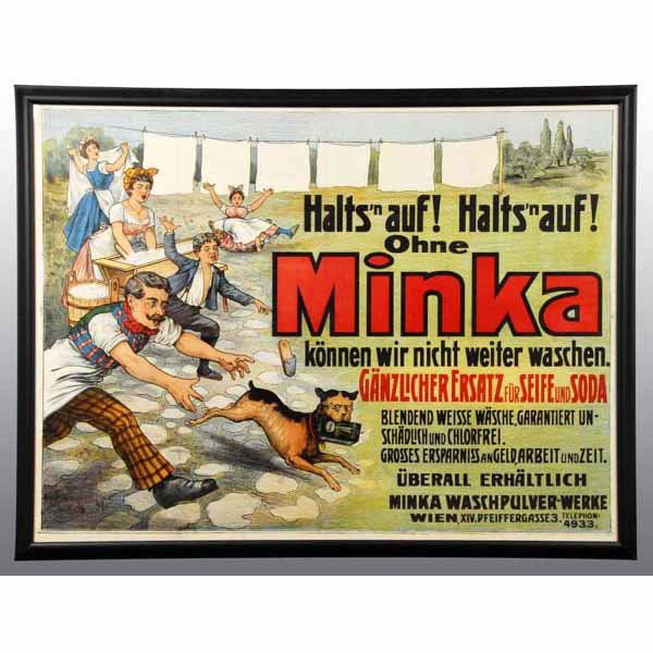 SoldLARGE FORMAT PAPER ADVERTISING FOR LAUTZ SOAP.This is a framed large format paper poster advertisement for Lautz Soap with a very interesting depiction of the use of that soap, made in Buffalo, New York. It shows some areas of folds and slight teSee Sold Price