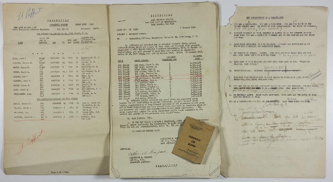 PARACHUTE LOG RECORD AND PARATROOPER DOCUMENTS