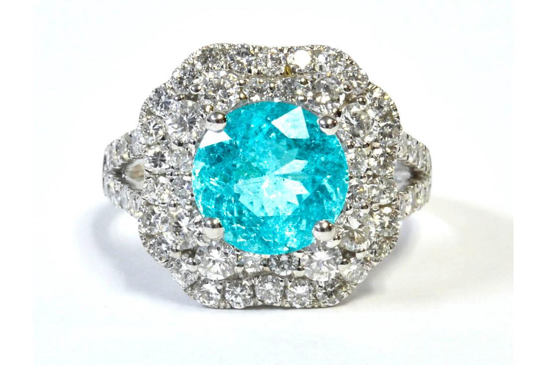 18K White Gold Ladies Ring with 3.45ct Paraiba Tourmaline and 1.74ct tw Adjacent DiamondsRiverside Galleries4.4(201)$504 days Left