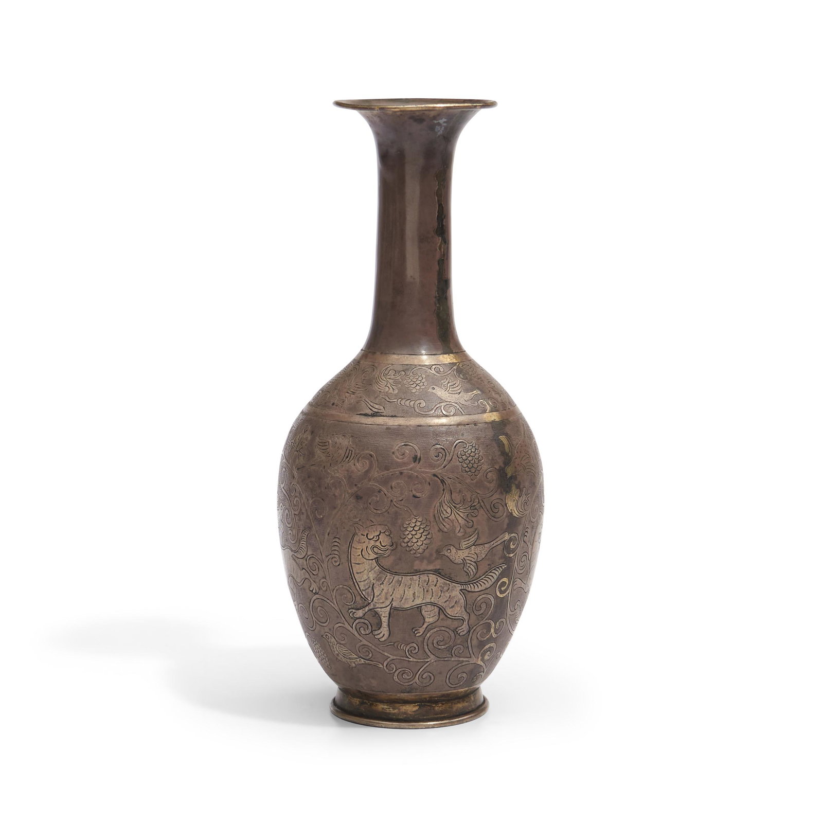 Parcel-gilt Alloy Repoussé Vase