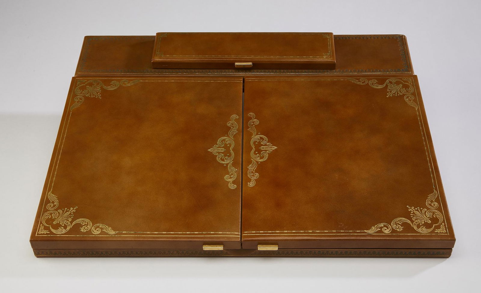 Late 20th Century Large Mid Century Leather BoxANTIQUE LEATHER BOX WITH ORIENTAL JADE INLAYFeb 07, 2026An Antique French Writing Box, Burl Wood Veneer and Marquetry Inlay of Mother-of-Pearl and Copper,Feb 04, 2026REGENCY GILT LEATHER DESK SET INCL. BLOTTER, PEN BOX +Feb 21, 2026Vintage Heraldic Dunhill Italian Leather Cigar BoxFeb 10, 2026Two Brass-Mounted Writing BoxesFeb 12, 2026‡ A lacquer chabako [tea ceremony utensils box], Edo periodFeb 11, 2026Vintage Cognac Leather Campaign Trunk with Brass Accents2 days LeftChinese Lacquered Wooden Chest Coffee Table With Animated Palace SceneLouis XIV Brass and Leather Coffer2 days LeftDutch Gilt Metal Mounted Marquetry Writing BoxFeb 12, 202618TH C. BRITISH DOME TOP DOCUMENT BOXFeb 21, 2026Antique British Colonial Lap Desk / writing box. Parquetry inlay in various woods. Ca. 1880. 5-1/4h15 hrs LeftEARLY DOVETAILED CHEST6 days LeftNeoclassical Faux Book Box 'Old English Homes' in Gilt Leather and Bronze1 day LeftWood & Stamped Leather Cabinet w/Pull-Out Writing SurfaceFeb 08, 2026