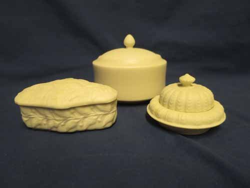 Parian Pottery: Leaf Design Covered Dish, Plain Covered