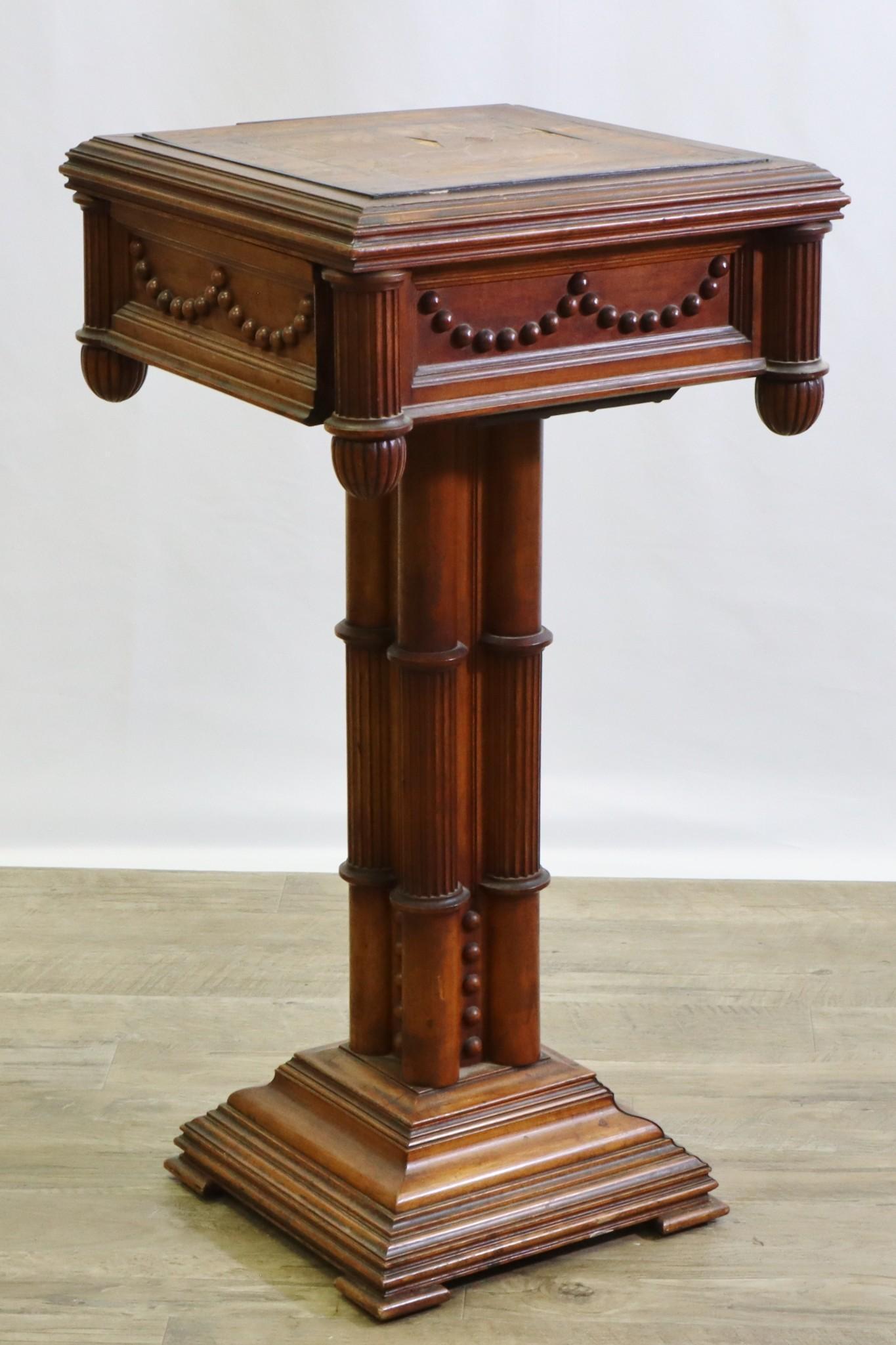 SoldInlaid Syrian Parquetry Middle Eastern Side Table Pedestal.Inlaid Syrian Parquetry Middle Eastern Side Table Pedestal. Dimensions: Height: 23.25 inches, Width: 17 inches, Depth: 17 inches. --- US Packing and Shipping charge: In house shipping available. WillSee Sold Price