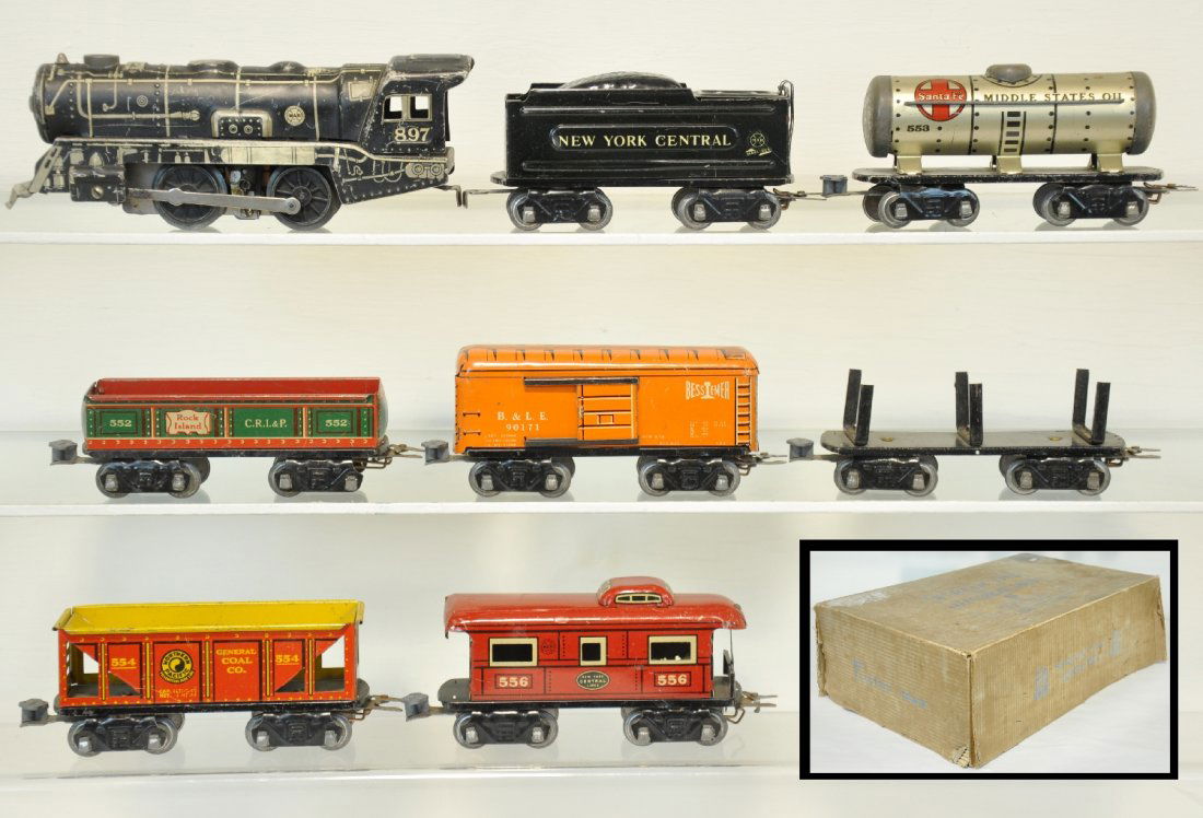 Lot of 7 Misc. HO Scale Train CarsApr 02, 2026(18) Wood Car Truck and Army Toy LotApr 11, 2026Aristo-Craft & Lionel G-Scale Gondola Lot of 5Mar 28, 2026LGB G-Scale Diesel Locomotive Lot of 3Mar 28, 2026Box Lot of Toy Train Cars- HO Scale1 day LeftUnion Pacific G-Scale Boxcar & Caboose Lot of 4Mar 28, 2026Assorted Vintage Tinplate Toy Train CarsMar 29, 2026Large Group of American Flyer, Handcars, Freight cars, & Hand Car ShellsMarx O-Gauge Tin Litho New York Electric Train Set with Original BoxMar 28, 2026Buddy L Outdoor Train setMar 28, 2026Beautiful American Flyer Prewar 4116 Boxed Freight Set2 American Flyer Steam Locomotives: 545 & 565 w/ Tenders - O GaugeAmerican Flyer Prewar Boxed Set w/401 Locomotive & TenderFive railway carriages, track 0, mostly Kraus-FandorApr 04, 2026Four railway carriages, Bing and Karl Bub, gauge 0, Nuremberg, from 1930Apr 04, 2026Kusan O Scale Kannon Ball Model Push Train SetApr 11, 2026