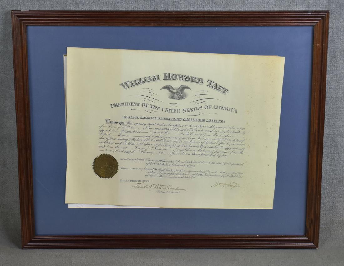 Partial Printed Doc. for Postmaster Signed by Taft