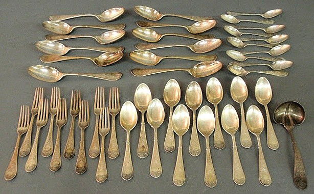 Partial sterling silver flatware service in the "R