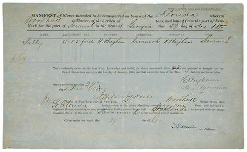 Partly printed slave manifest