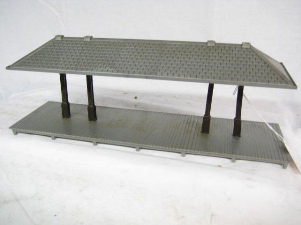 SoldPOLA-LGB G-scale Covered Passenger Platforms (2) -One lamp is missing a cover; lights are not tested - comes with one box (item does not fit unless disassembled) - comes with 3 extra lights for repair - 4 slanted platforms for end of platform are picSee Sold Price